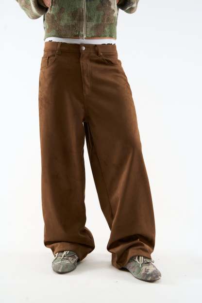 Suede Dark Brown Jumbo Pants